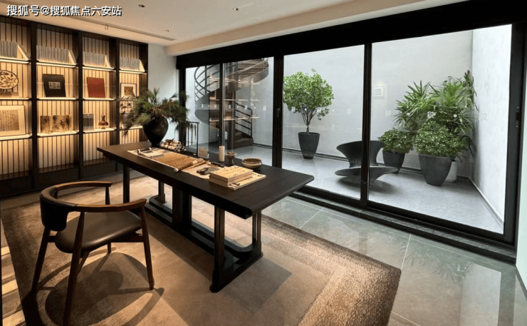 绿城突破传统低密社区设计,以2.0容积率打造4-6层叠院式大平层。建筑外立面采用紫兰花石材与隐框玻璃幕墙结合,配以香槟金金属格栅,既呈现摩登质感,又融入飞檐、窗框等宋式建筑元素。室内空间由汤臣一品御用团队HWCD、吴滨等大师操刀,4.8米挑高客厅、270°转角落地窗设计,实现“双首层院境艺术空间”,将山水框景入室。