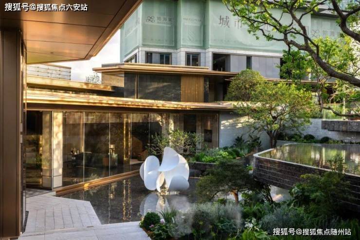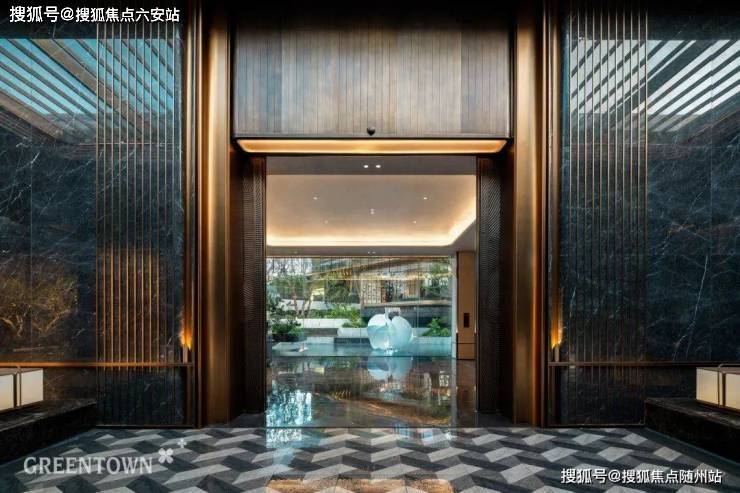 约52米洄游式大门启程,香槟金铝板、汉白玉奢石,以及368片伊朗白雪公主玉石等材质,营造归家尊崇感,穿越以光为引的奢华光厅,即见中国美院副教授施海倾心打造的《海棠知语》雕塑,立于水景中央,柔光漫过细节,步履皆是礼遇。