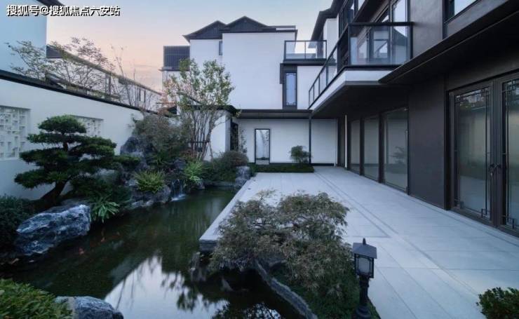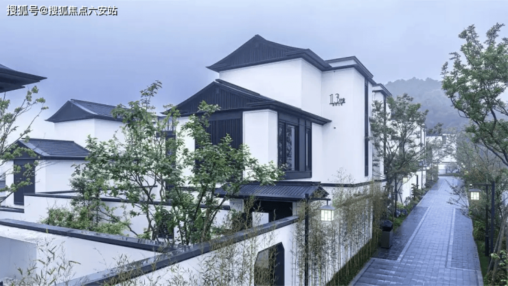 建筑风格:以新中式为主,融合古典与现代美学,白墙黛瓦、飞檐翘角,与周边自然山水相生相融。