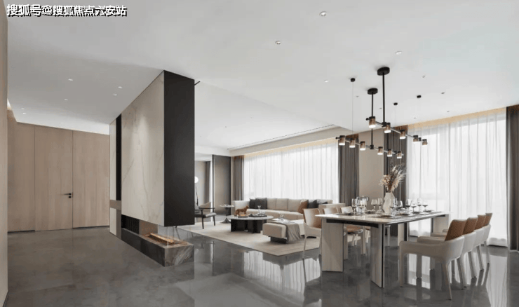 室内拥有独立的玄关,与步入式的衣帽间;玄关液态金属板造型,与立面高级烤漆木饰面,尊贵精致;客餐厅,运用了洄游空间的设计手法;25平米的超大厨房;超3米的挑高空间;全屋智能家居设计;三房朝南设计,