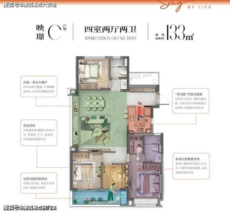 在户型设计方面则展现了“效率美学”:建面约106㎡户型实现约6.7米南向双联阳台,采用LDKB一体化设计,获得超越面积的空间感;建面约133㎡户型独创“800库”玄关系统,将露营装备、运动器械等大件物品收纳难题优雅化解。