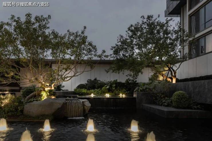 居中的两幢楼下,做了板块第一个半封闭式架空层,兼容瑜伽、健身、亲子、阅读等功能,既是晴雨无阻的俱乐部,更让室内外美景丝滑衔接。最令人心旷神怡的,是最后一进景观——约400㎡的景观戏水池,绿植环绕四周,有如热带雨林。玩完水在这里一躺,比置身海岛度假酒店更松弛酣畅。