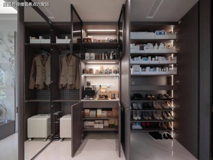 此外,柜子还贴心预留有储物百宝箱、男主人的藏酒柜、女主人的多变操作台…家电杂物位,让这些工具、物品也能有一个“小家”。
