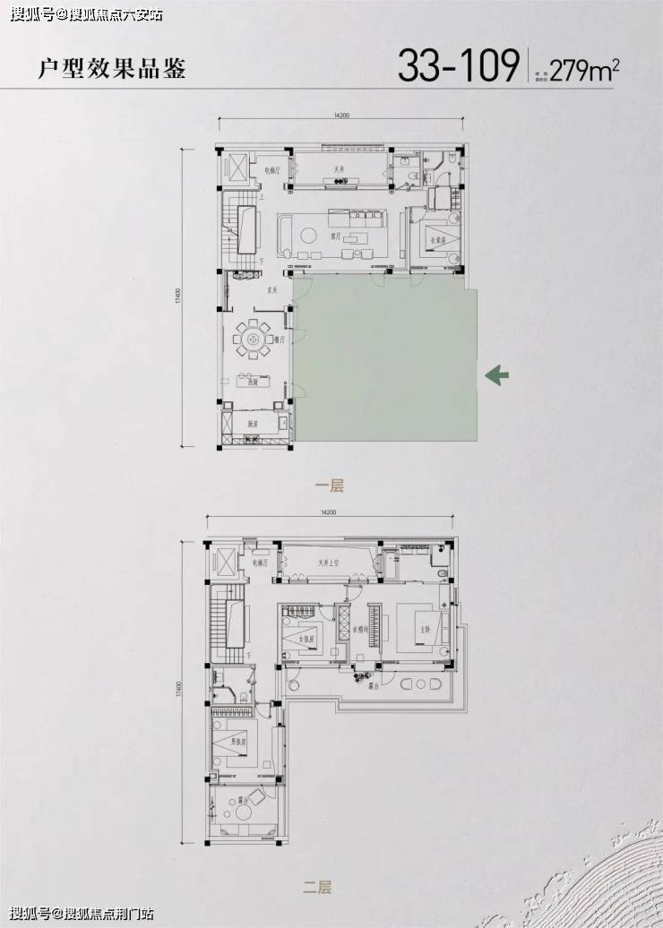 此外,项目把院子本身作为生活的原点,客厅、餐厅、卧室等空间环院落而成一层主力庭院面积约100-200方,是其他项目普通庭院无法比拟的空间尺度!