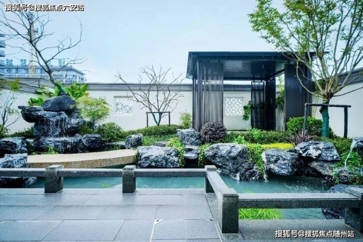 园林设计融入苏式园林的框景、对景、漏景等手法,选用造型松、翠竹、太湖石等元素,营造四季有景、富有文化内涵的沉浸式景观。