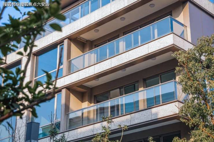 光是四面干挂石材+香槟金铝板的外立面,就能轻松赢过大多数新盘。搭配大面积的玻璃幕墙,窗墙比超过了60%。既有豪宅的矜贵,同时更显现代轻盈。