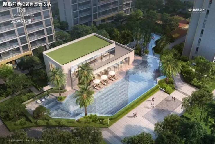 项目配置极具考究的不规则镜面泳池,每一块材质尺寸误差都在毫厘之间,整个泳池平整度、花纹、景观效果达到最佳效果。