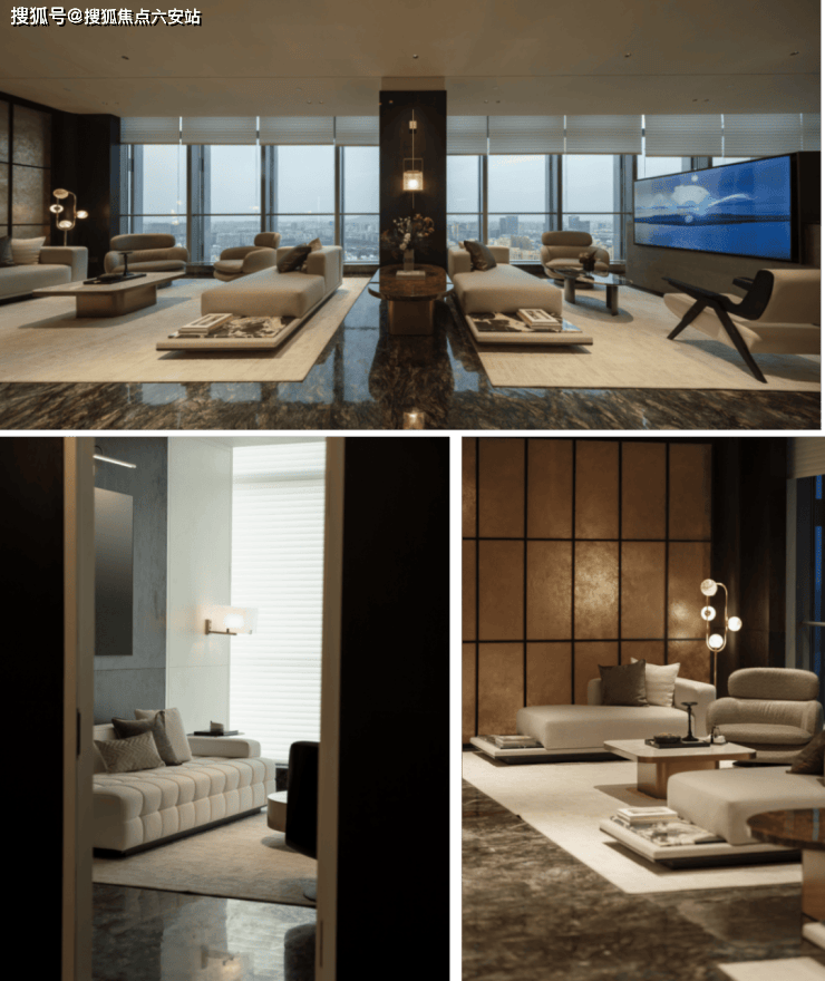项目引入垂直会所概念,将社交场景从地面延伸至立体空间:地下层设置私宴厅与雪茄吧;首层大堂化身艺术品展示长廊;顶层规划约200㎡的空中会客厅,满足多元社交需求。这种立体社交空间布局,重新定义了高端人群的社交方式。