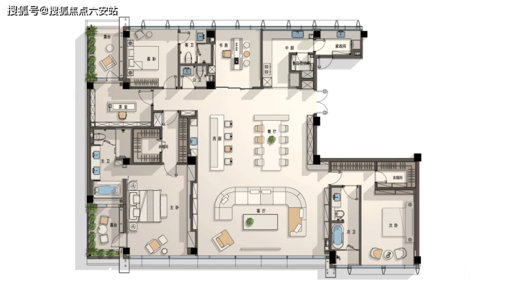标准层也带南北双露台,约8.6m面宽的大方厅,居住舒适度明显高于一般的高层大平层。