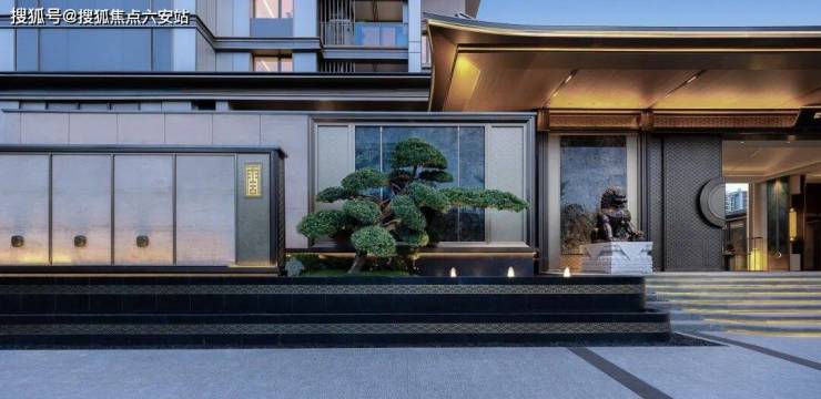 景墙选用蓝翡翠奢石,两侧高约2米(含基座)、重约600斤铜狮镇宅,尊贵感油然而生;罗汉松、杜鹃等百年珍稀古木错落其间,走在全域覆盖风雨连廊的高层区,这100多户业主的日常如同逛“大观园”一般,小而精致,美而雅。