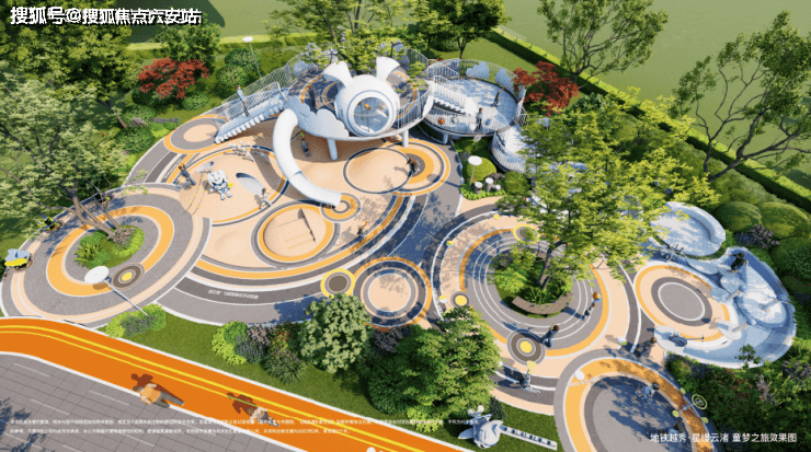 “星轨广场”、“星云河谷”、600米空中微汗跑道、2.4KM漫步道、萌宠乐园、观星台等互动节点,织就一幅“五分钟洄游”的理想画卷。