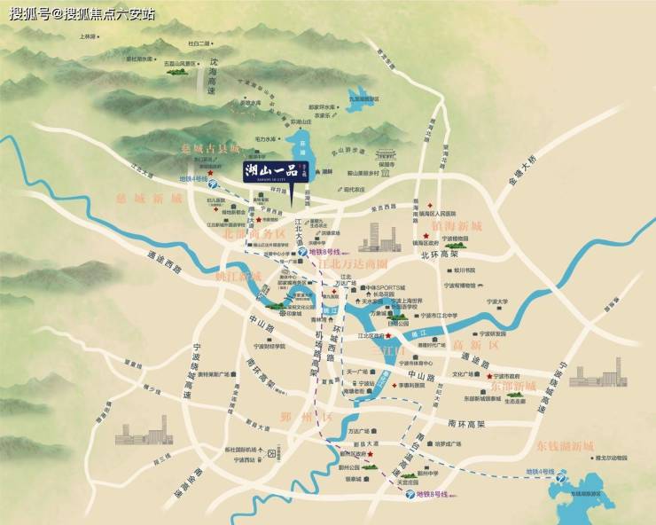 湖山一品·半岛最大的价值锚点在于其不可复制的地段属性。项目位于宁波江北区省级湖山旅游度假区内,具体坐落于姚江新城势能板块与城西/城北发展的黄金双轴交汇点。