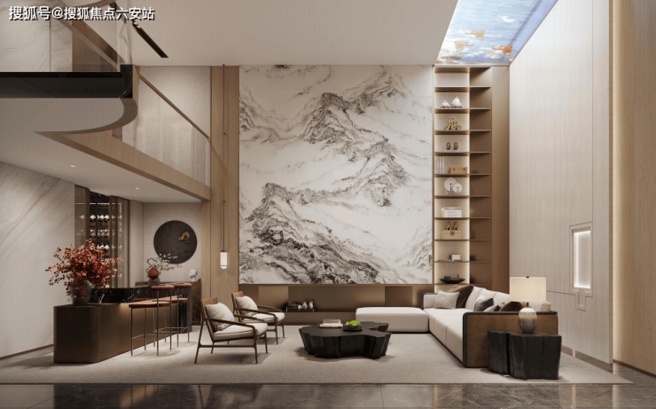 四面铝板+三层lowe玻璃立面,搭配进口爱马仕灰和蓝眼睛石材,与坡屋顶的结合,沿袭传统宋式山水美学,写意现代东方气韵风华,三进二庭五园的中式传统轴线布局,两轴九景四时的极致意境生活。景观与空间相互渗透交融,行走至其间形成视觉上的联系与流动感,步移景异,悠闲和缓。