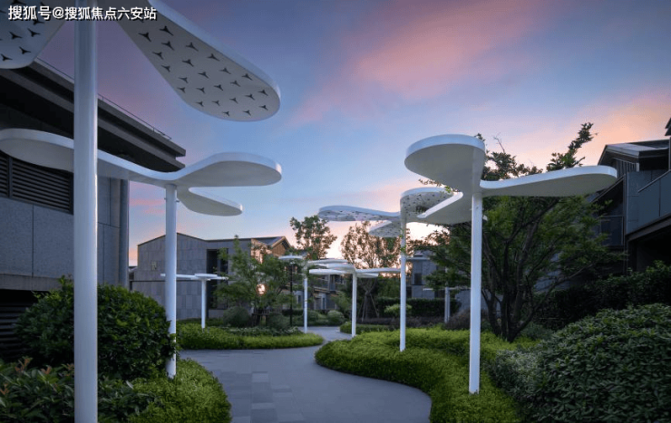 夏季到来,最为亮眼的大概就是联排区内以“小雪”为主题的景观了。区域内设置了一排形如雪花的雕塑装置,除了增加氛围感外,既可休息又能遮阳;白色的雪花雕塑搭配浓郁的绿植,在视觉上为炎炎夏日“降温”。