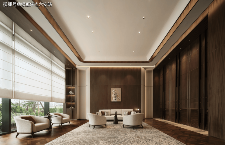 大堂设计:18米挑高室外大堂,2.4米幕墙玻璃