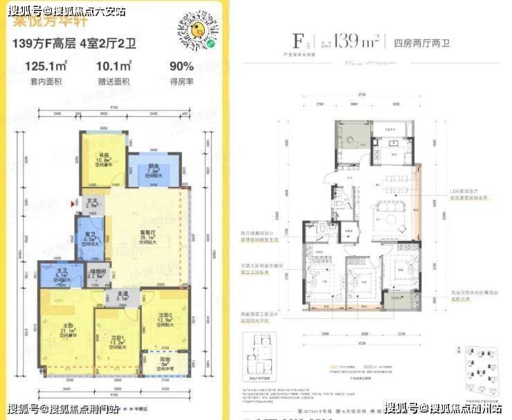 建面约99㎡、113㎡户型是三房设计,建面约108㎡、120㎡、128㎡、139㎡型是四房设计。(以下所有户型得房率来自第三方小程序,不作为正式依据,仅供参考)