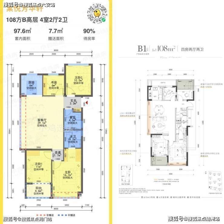 建面约108㎡的四房两厅两卫户型,在主流户型设计中一般100方左右只能做三房设计,棠悦为了户型的舒适性,做到了四房设计而且是边厅户型,通透性更强、利用率更高。
