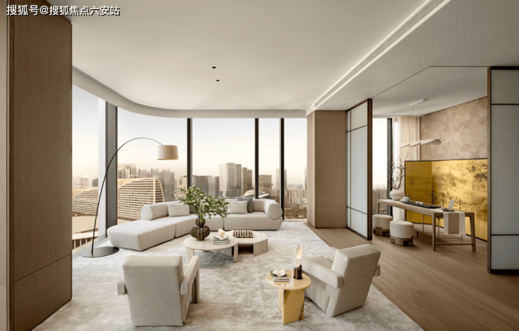 室内由 CCD(郑中设计事务所)打造,凸显了现代奢华和品味的精髓,从高档材料的运用到开放式的空间布局,270度“无柱转角落地客厅”站在Amber 98的样板间,奥体地标杭州之门近在咫尺,仿佛每一个建筑细节都触手可及。全屋通高的柜体,头顶的无边框灯具,将本就优越的层高直接拔高到了“奢享”的概念。