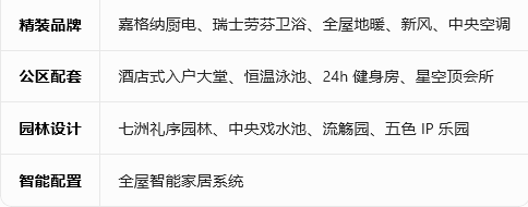 精装标准:民水民电通天然气,物业费6.8元/㎡·月,匹配顶豪生活标准。