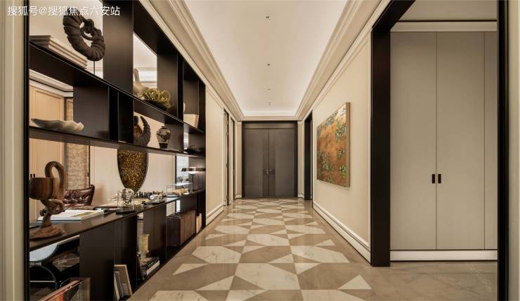 建面约410㎡“湾潮”户型:由WSD上海世尊团队以“摩登东方”为设计语言打造。LDK一体化方厅面积达109㎡,衔接50米U型跑道阳台,提供270°环幕视野。主卧套房配置双衣帽间及观景浴缸,还设计了法式艺术走廊,将东方雅韵与现代生活需求完美平衡。