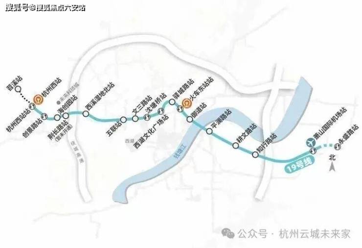 机场快线19号线:直距约870米火车西站站,始于苕溪站,通向萧山机场方向永盛站。