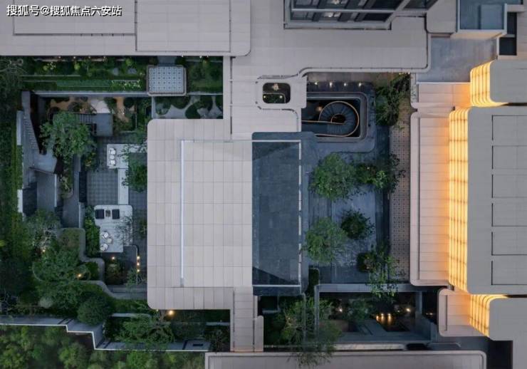 丽香庭借鉴古典入园空间序列,打造多重院落、层层递进的归家礼序。地块整体抬高约3.7米,最大高差超过7.5米的下沉庭院,以微妙的视觉层次划分功能空间,通过散点布局、小空间组织,消解空间中心;自然山水垂直铺展,形成多维“立体庭院”。游廊曲折、台地错落,行走其间,循着自由灵动的立体游园路径,忘园入画,化境归心。