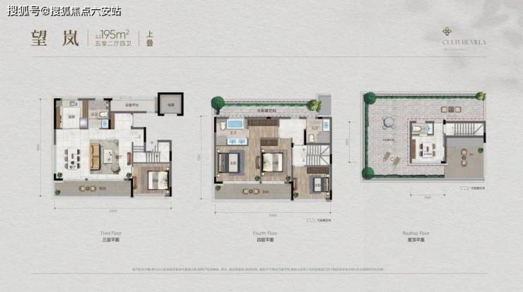上叠:配备70㎡"270°环幕式"星空露台及阁楼空间,195㎡上叠为5房4卫。
