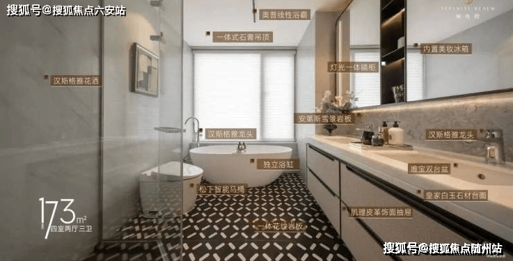 卫浴间采用灯光一体镜柜、肌理皮革饰面抽屉,主卫镜柜还内置美妆冰箱……这些小细节,无一不体现出“滨江造”对产品力的极致追求。