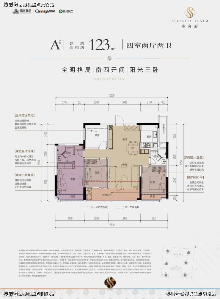 项目打造建面约123-173㎡的主力户型。该项目在户型打造上也有诸多突破,如建筑面积约139㎡户型采用约6.8米全景横厅,采光极佳;约21㎡主卧带步入式衣帽间,搭配270°转角飘窗,更奢华明亮;双洄游动线体系既保证隐私又创造多元互动场景。