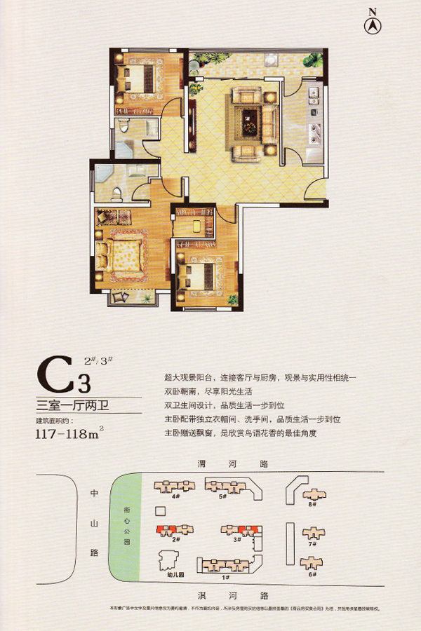 东郡华庭,旨在为每一位业主打造一种“楼上是生活,楼下是风景”的公园居住环境,小区内部打造了一个9000㎡的中央景观广场,紧邻中山路,还将建设一个6000㎡的街心花园,项目南侧与社区幼儿园一路之隔的是规划中的市政公园;步行大概10多分钟,可以到项目南北两侧的市政公园,既增加了生活情趣,又锻炼了身体。