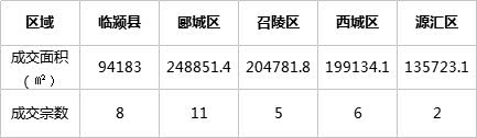 从9月份漯河土地成交区域来看,成交共计32宗,面积882673.39㎡,成交207129.89万元,土地成交宗数主要集中在临颍县、郾城区、召陵区、西城区、源汇区;其中临颍县土地成交8宗,出让面积94183㎡,占比11%;郾城区土地成交11宗,出让面积248851.41㎡,占比28%;召陵区土地成交5宗,出让面积204781.75㎡,占比23%;西城区土地成交6宗,出让面积199134.14㎡,占比23%;源汇区土地成交2宗,出让面积135723.09㎡,占比15%。