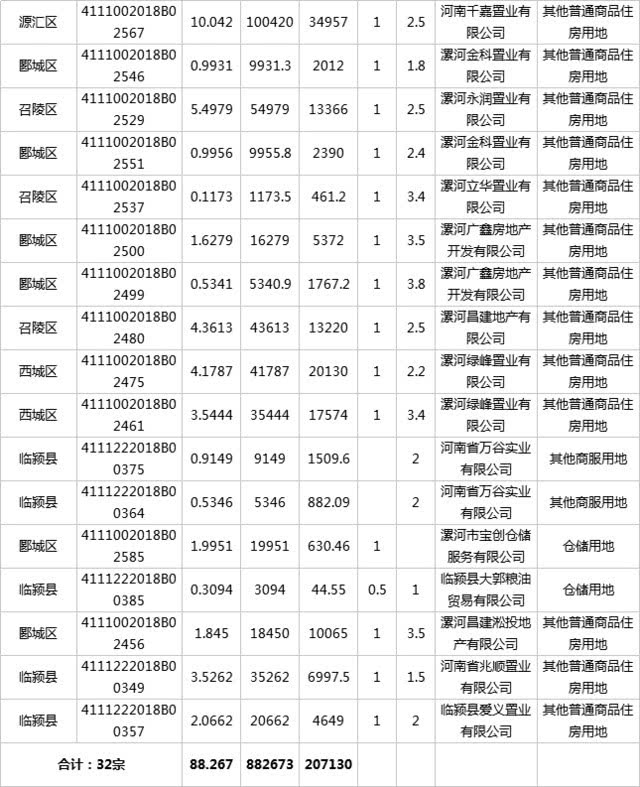 综上数据所见,漯河市场在2018年9月份土地成交宗数为32宗。漯河的土地市场维稳,从市场反应看,漯河2018年9月楼市相对火热,漯河市多个新盘入市,在售项目推出新品,各大地产企业也针对“金九银十”以及“中秋节”推出各种优惠房源和特惠活动。