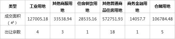 中国土地市场网统计数据显示,从9月份漯河土地成交类型来看,工业用地挂牌出让4宗,出让面积为127005.18㎡,占比14%;其他普通商品住房用地挂牌出让18宗,出让面积为572751.93㎡,占比65%;科教用地挂牌出让3宗,出让面积为65974.26㎡,占比34%;其他商服用地挂牌出让3宗,出让面积为33538.94㎡,占比4%;住宿餐饮用地挂牌出让1宗,出让面积为28535.16㎡,占比3%;商务金融用地挂牌出让1宗,出让面积为14057.7㎡,占比2%;仓储用地挂牌出让5宗,出让面积为106784.48㎡,占比12%。