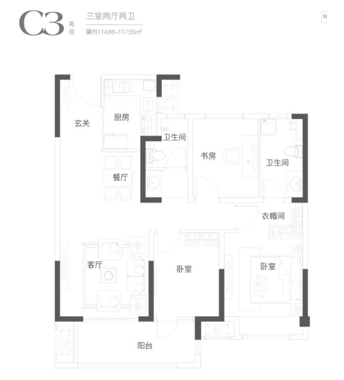 【在售高层】:建面约89-135㎡奢阔高层
