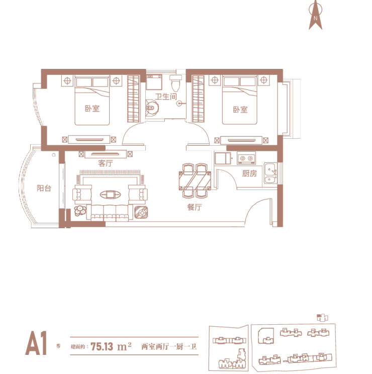 产品面积:75㎡臻稀两房, 93-118㎡舒适三房、