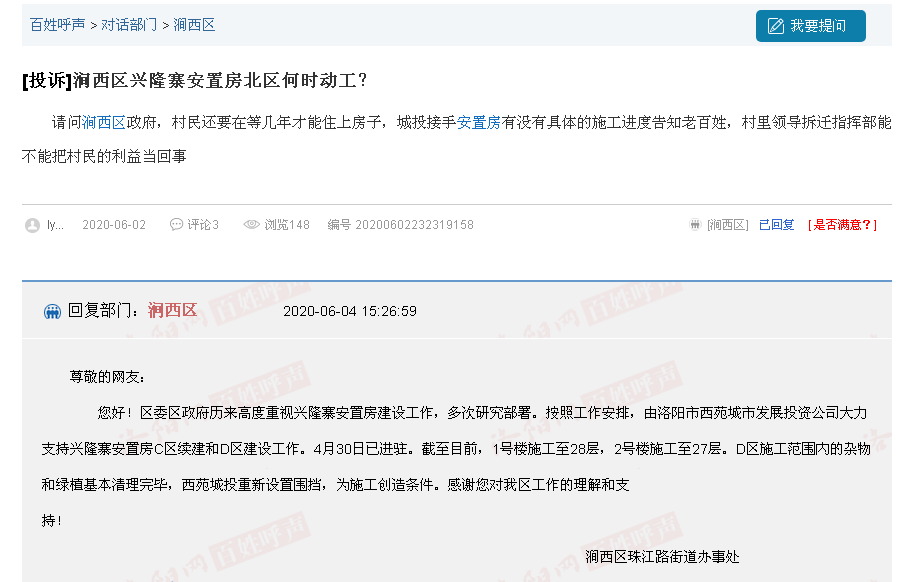 请问涧西区政府,村民还要在等几年才能住上房子,城投接手安置房有没有具体的施工进度告知老百姓