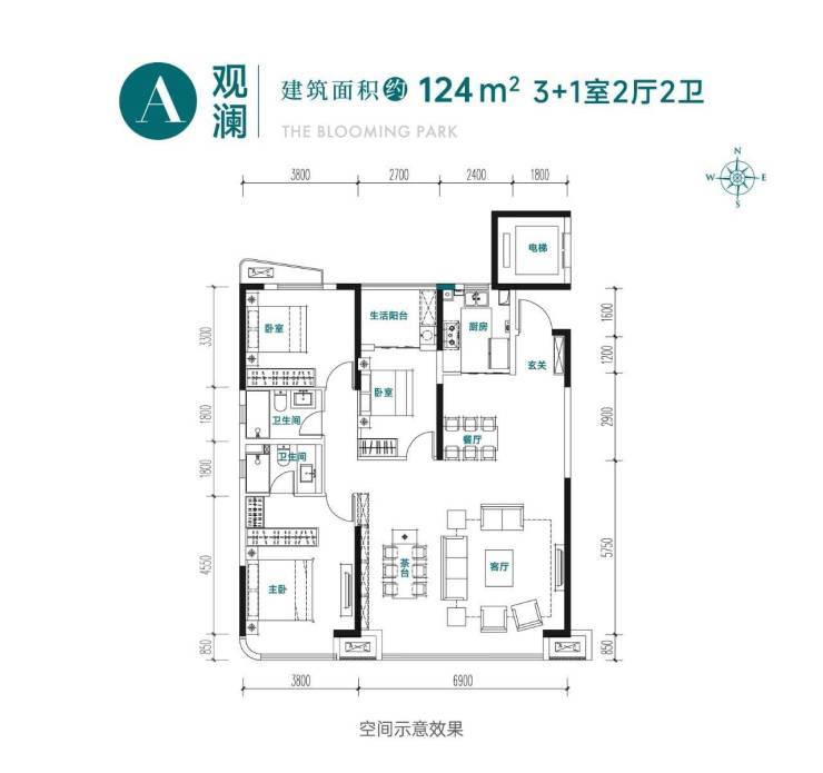 观澜 | 户型|建筑面积约124㎡ 3+1室2厅2卫