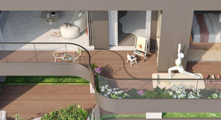 通过垂直绿化、空中花园、屋顶绿化、住宅阳台绿植等建筑空间手法,为郑州许一座花园私岛,创造「私屿双庭云墅」奢居。