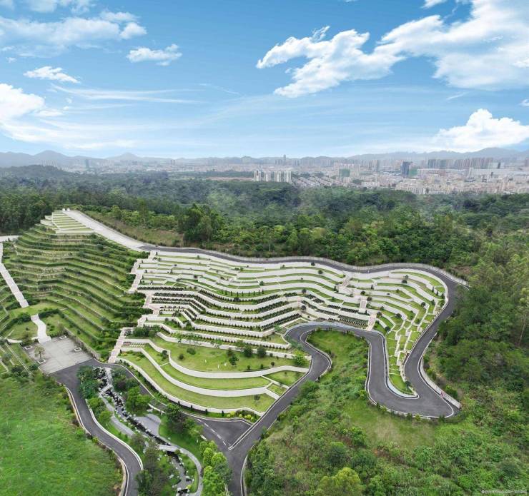 永祥和纪念公园所在区域属于岭南莲花山脉,山势起伏绵延不绝,青山环抱、灵水缠绕、云遮雾障、仙云飞渡、草木葱郁、负阴抱阳,可谓山苞川拱、祥护灵祗,既得山水之境,又不失比邻城市之利,是大湾区藏风聚气的绝佳宝地。