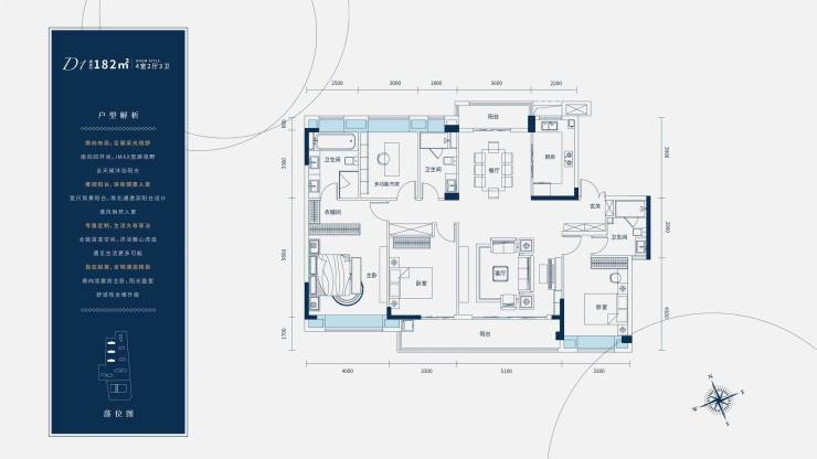【D1户型 :约182㎡户型 4室2厅3卫】