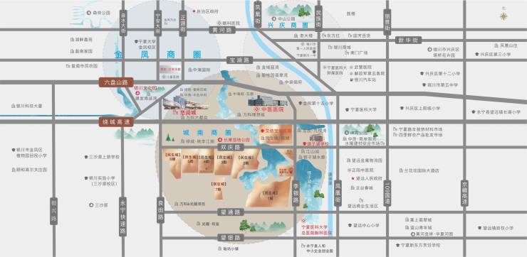 项目周边交通路网发达,李银路与双庆路双向四车道,通行银川各城区,为您的生活、工作提供诸多便利,北侧绕城高速可直达河东机场和火车站。
