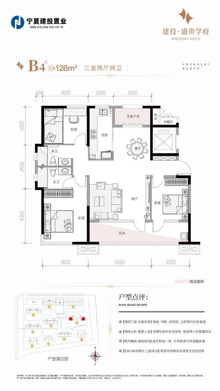 3+2+2户型 建筑面积约128㎡ 赠送约10㎡