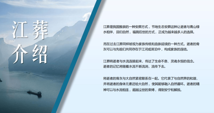 在武汉市,江葬作为一种环保、绿色的殡葬方式,正逐渐受到人们的接受和认可。它不仅体现了对自然的尊重,也符合现代社会对于节地生态安葬的倡导。本文将为您详细解析武汉江葬服务的内容及其费用构成。