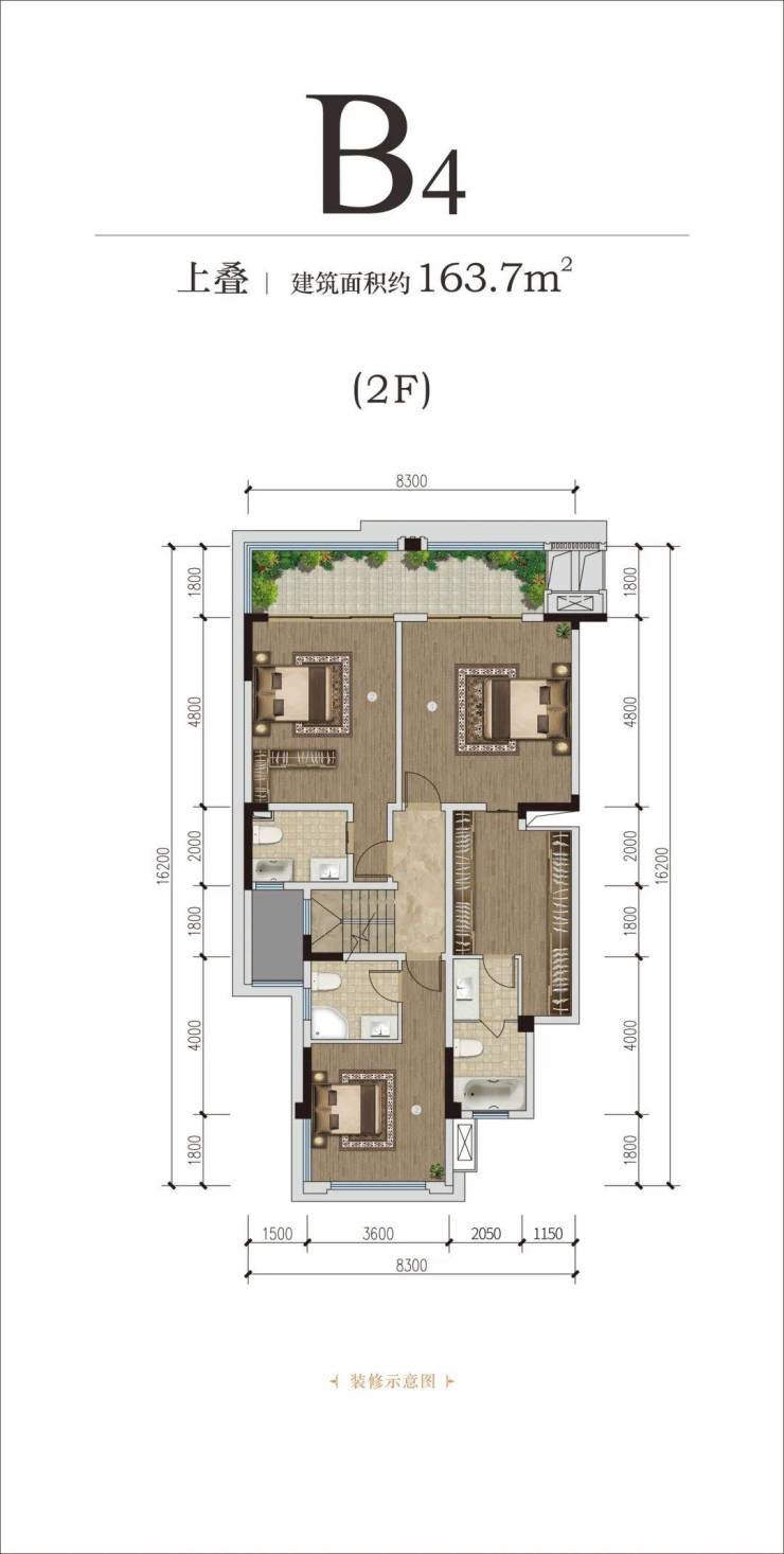 在售主力户型:建面约160㎡实景叠墅(附赠面积达300㎡)