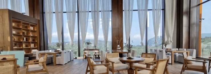 酒店客房装饰舒适大方,温馨简约。每间客房配有独立休闲娱乐平台,置身其中,可尽览海子山的森林、云海、蓝天等绝美自然风貌。