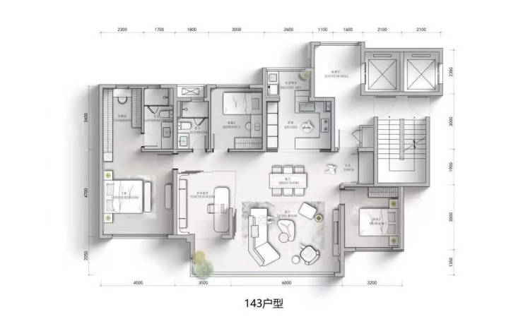 私密配置:143-198㎡采用2梯2户,248㎡实现整层专属的一梯一户格局