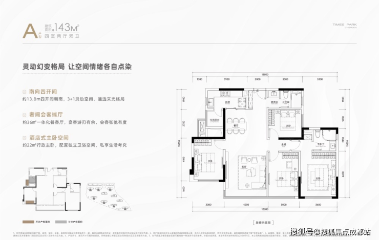 A户型/建面约143㎡四室两厅双卫