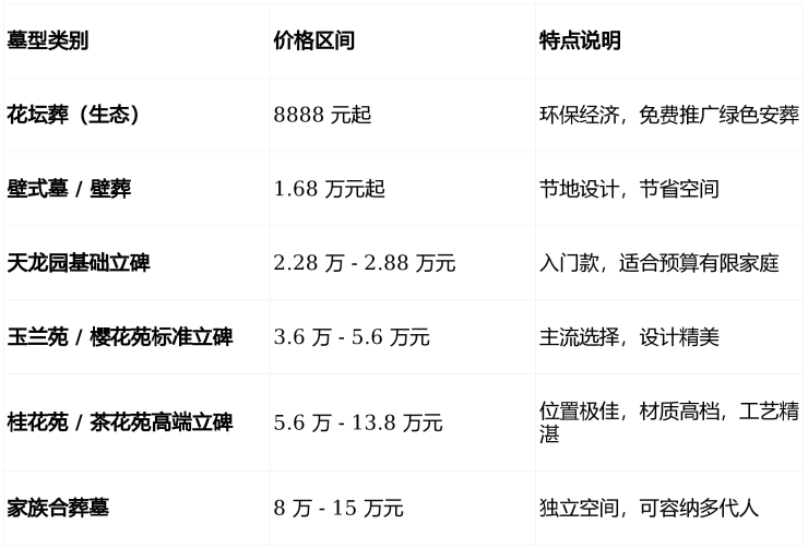 以上价格仅供参考,详情请拨打陵园电话:400-996-0853 (24小时)咨询确认;