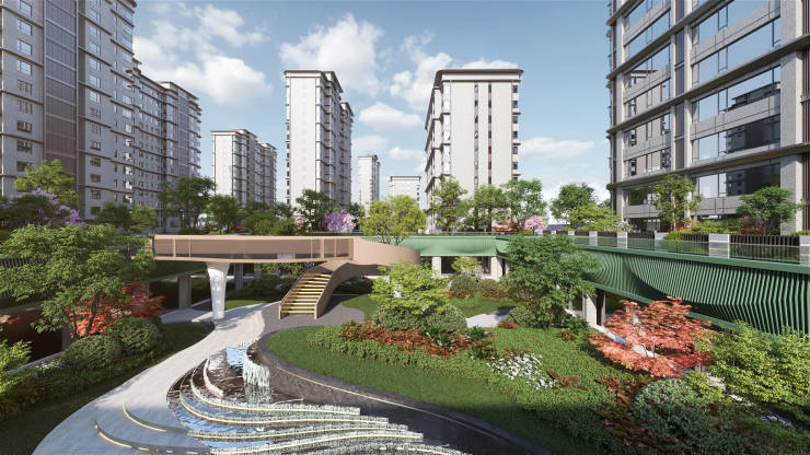 【造极城芯的美学园境】约40%亮眼绿地率,繁花碧树俯仰相合。“5进10重”府系景观体系,移步换景,听风树语隐于朝暮,香颂时光。自然的回眸与回归,动与静的人生意涵在园与屋之间更替流转。