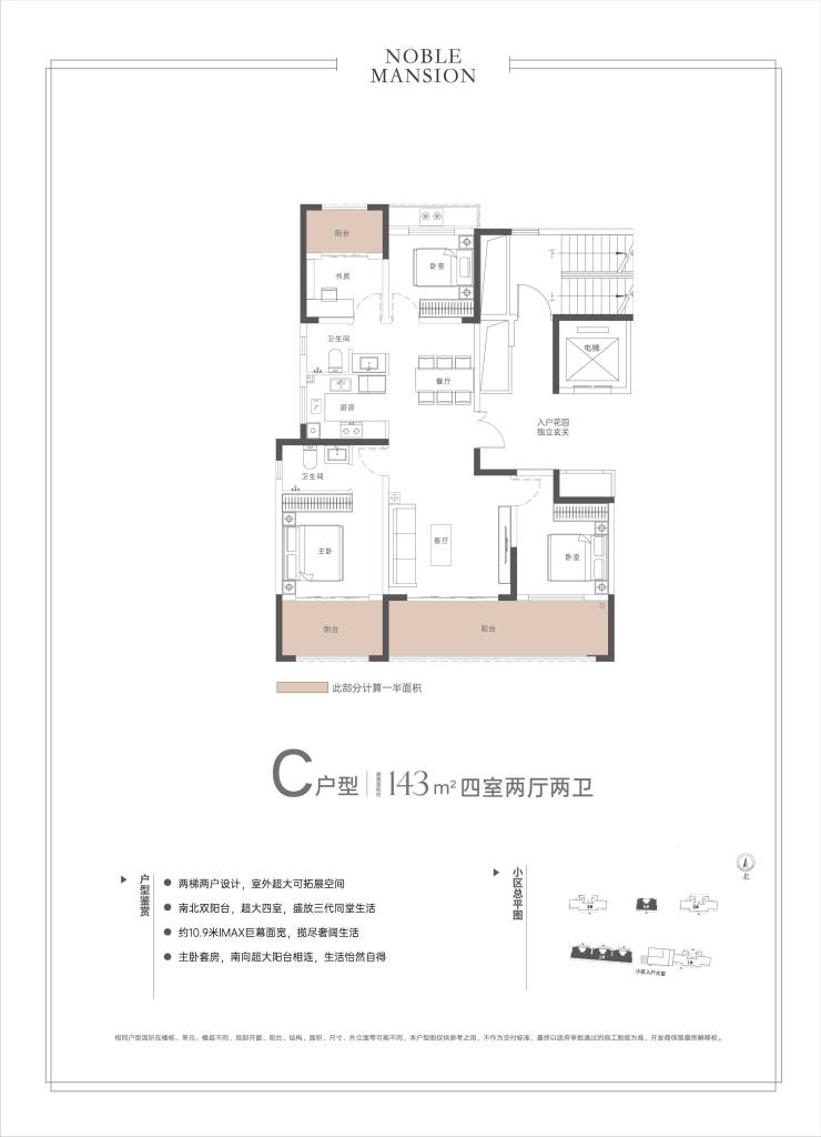超大赠送:143 ㎡户型,1梯 1户,户内赠送高达 13 ㎡、户外私享约 36 ㎡入户空间